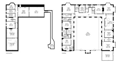 The ground floor west wing flows seamlessly to the rest of the ground floor and features the former receiving room for guests. This floor is serviced by three bathrooms and a cloakroom. Cornering the north west wing, the formal dining room has a rear facing bay window, and one of three extraordinary floor to ceiling oak fire surrounds. There is a double bedroom with en suite dressing room, a sitting room and most attractive west wing corner front room. Everyday utility tasks are catered for in the laundry room and a nostalgic reminder of times past is the paymaster’s room, which still has evidence of filing and payment drawers.