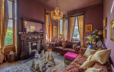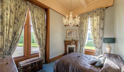 A grand sweeping staircase leads to the first floor. Located on the east wing is the principal suite, comprising a large and fabulously light double bedroom, thanks to its bay and side windows. There is an en suite dressing room and bathroom with double ended bath and walk in 2 person shower room. There are two further bedrooms one of which is known as the Purple Room with en suite and bathroom and the other known as the Chinese Room with en suite.