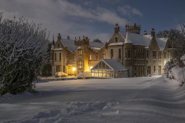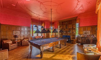 The Red Bathroom services the billiard room which is a breathtaking space with a large boxed window with further double window and a corner turret window overlooking the formal garden. Opposite in the west wing is the principal bedroom with rear bay window and en suite shower room with a further adjacent bedroom with en suite shower room. The front facing drawing room with corner window is reached from the main west wing hallway. This wing offers ideal self contained independent space for multi generational living, with a bedroom, butler’s bedroom, butler’s kitchen, informal sitting known as the cosy and bathroom. The entire lower level offers considerable versatile space while remaining partially above ground for natural lighting. As one would expect in a property of this stature the lower ground floor is very well equipped with a preparing/catering kitchen, large store, refrigeration and freezer room, along with a substantial wine cellar. From its previous history of academic use by university students are two Seismic rooms with five original Seismic tables, suitable for further storage while a gym bedroom/office and pistol shooting / archery area completes this level. The loft level of the east and west wings are accessed separately from two different staircases and are fully floored, offering considerable storage space and games room etc. A spiral stairway from the east wing leads up into the external tower space for a roof top vista of the surrounding countryside. Location Situated in the parish of Udny, 3 miles south of Pitmedden and 11 miles north of Aberdeen, and about 6 miles from the new Western Peripheral Route, Tillycorthie Mansion House sits to the south of Udny Station within a magnificent gated and walled estate. Surrounding the property within a few miles are several castles / shooting / fishing estates and world class golf courses including Trump International GC.
