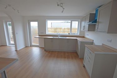 The accommodation includes a generous lounge with a solid fuel burner, a refitted kitchen breakfast room with rear garden access, and a separate dining area – ideal for modern family living or entertaining. There are two double bedrooms and a well-appointed shower room accessed via the rear lobby.