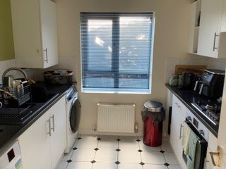 The kitchen cupboard doors and skirting have all been recently upgraded (2024) to modern white wood effect cupboard doors with soft closure and skirting with a new AEG Gas hob and Bosch Electric Oven and extractor fan, and there is space for both a washing machine and dishwasher. A wall-mounted combination boiler serves the property (serviced in March 26).